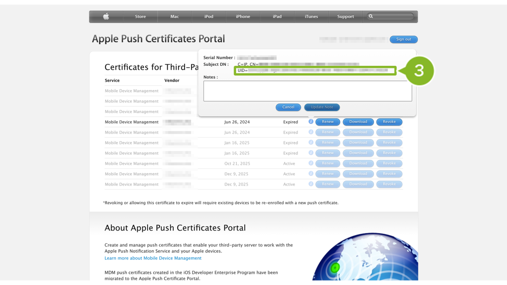 Apple Push Certificate Portal(APCP)での UID 確認方法