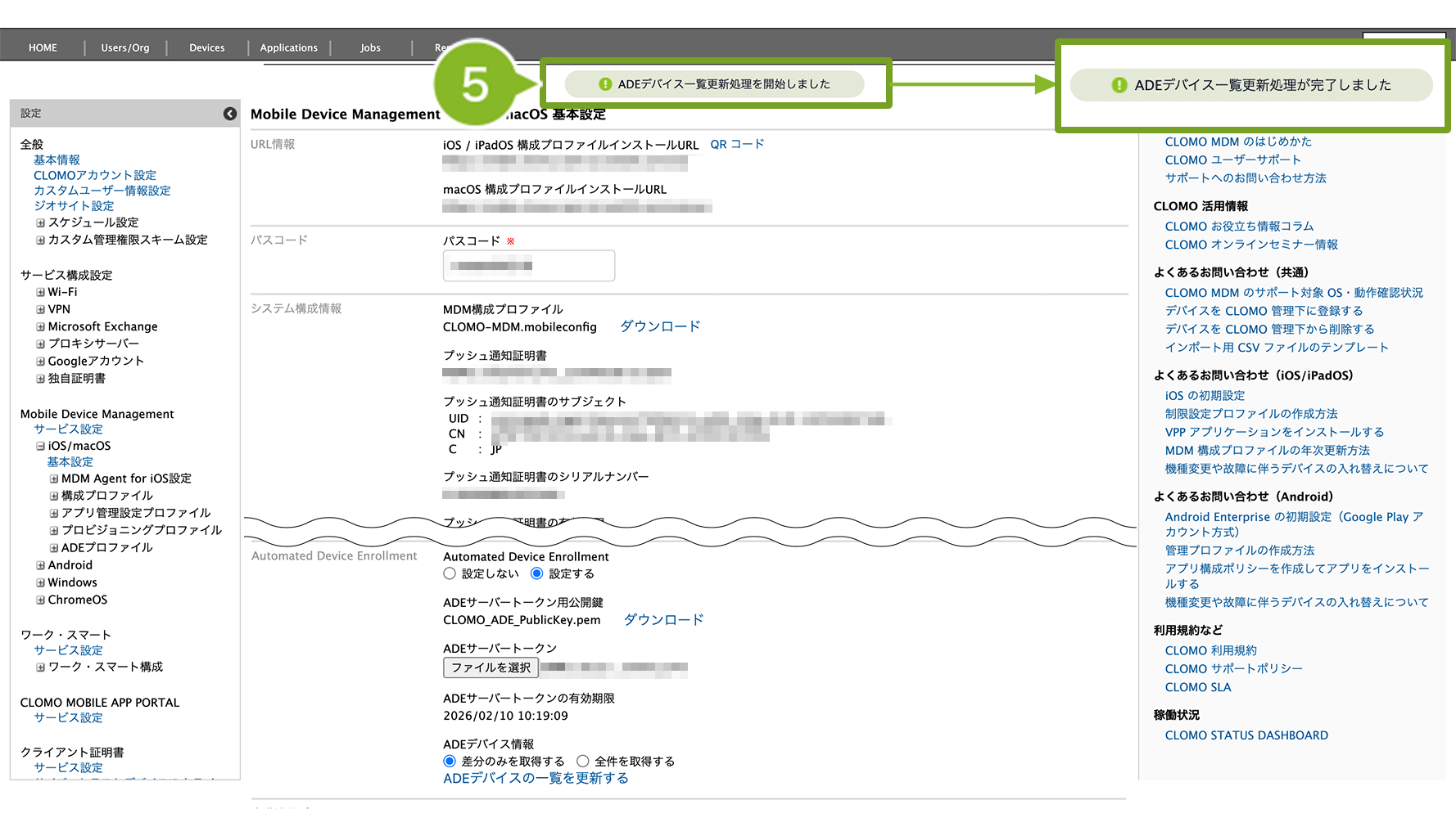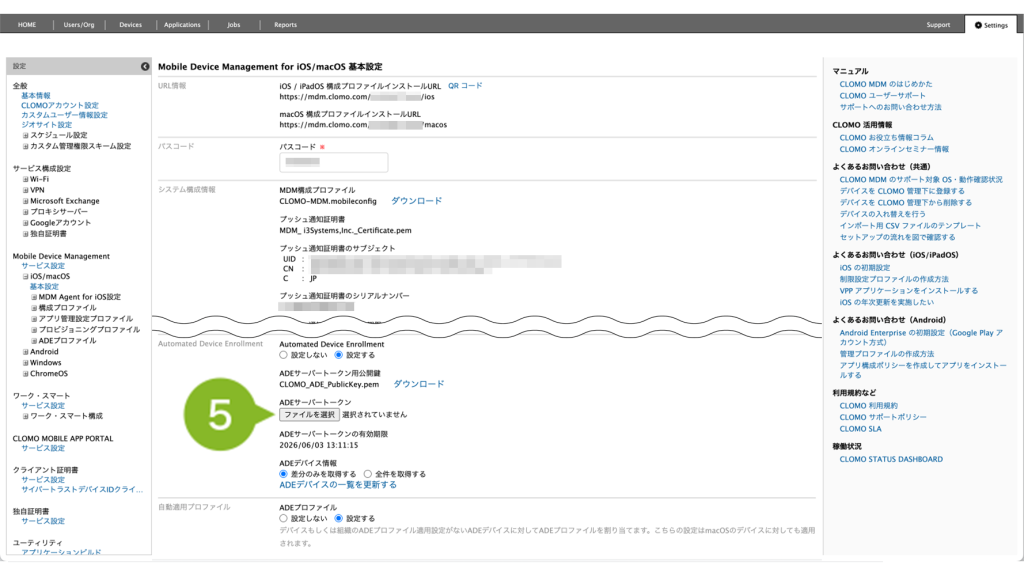 8. 登録完了後、Automated Device Enrollment 欄の「ADE サーバートークンの有効期限」が更新されていることを確認します。