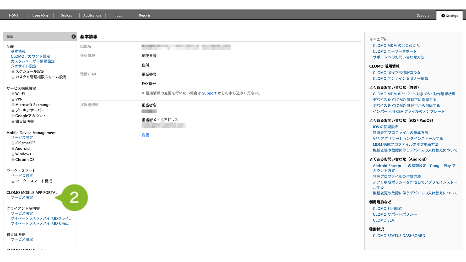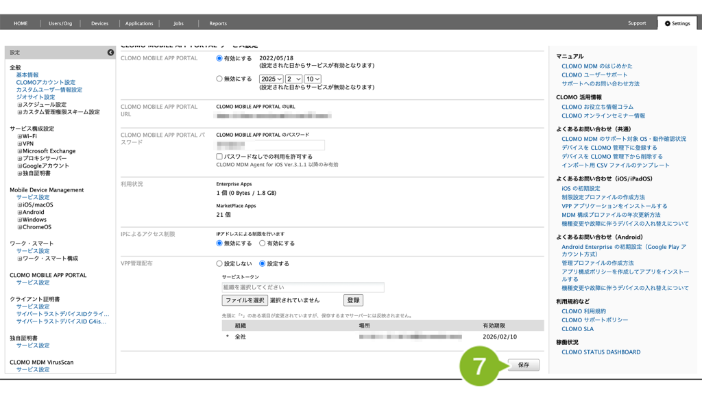 2. [CLOMO MOBILE APP PORTAL]から[サービス設定]をクリックします。