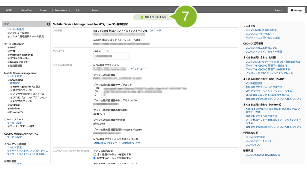 ※「Notes」には、証明書に関する情報(「CLOMO MDM で使用している証明書」など)を記載しておくと、次回更新時に活用できます。