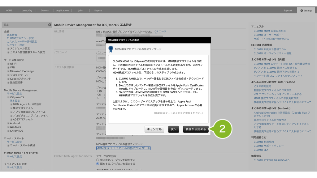 2. Mobile Device Management の[iOS/macOS]をクリックします。