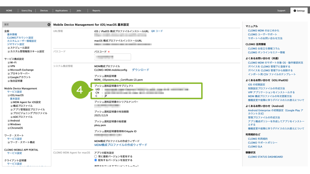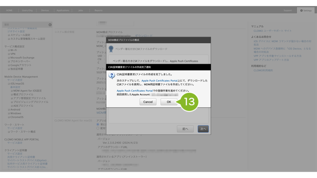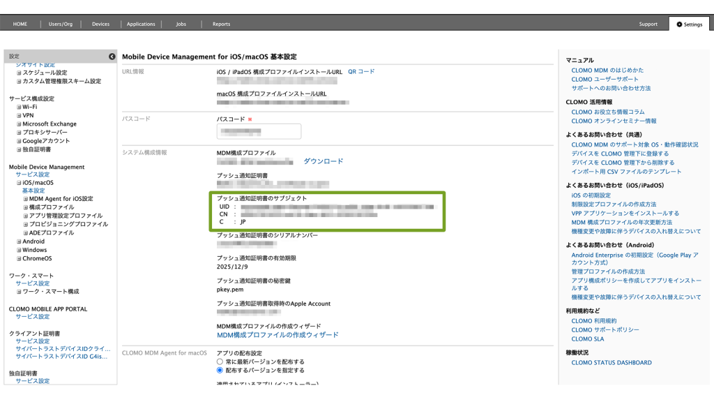 CLOMO PANEL と Apple Push Certificate Portal(APCP)の UID が一致しているか確認をする