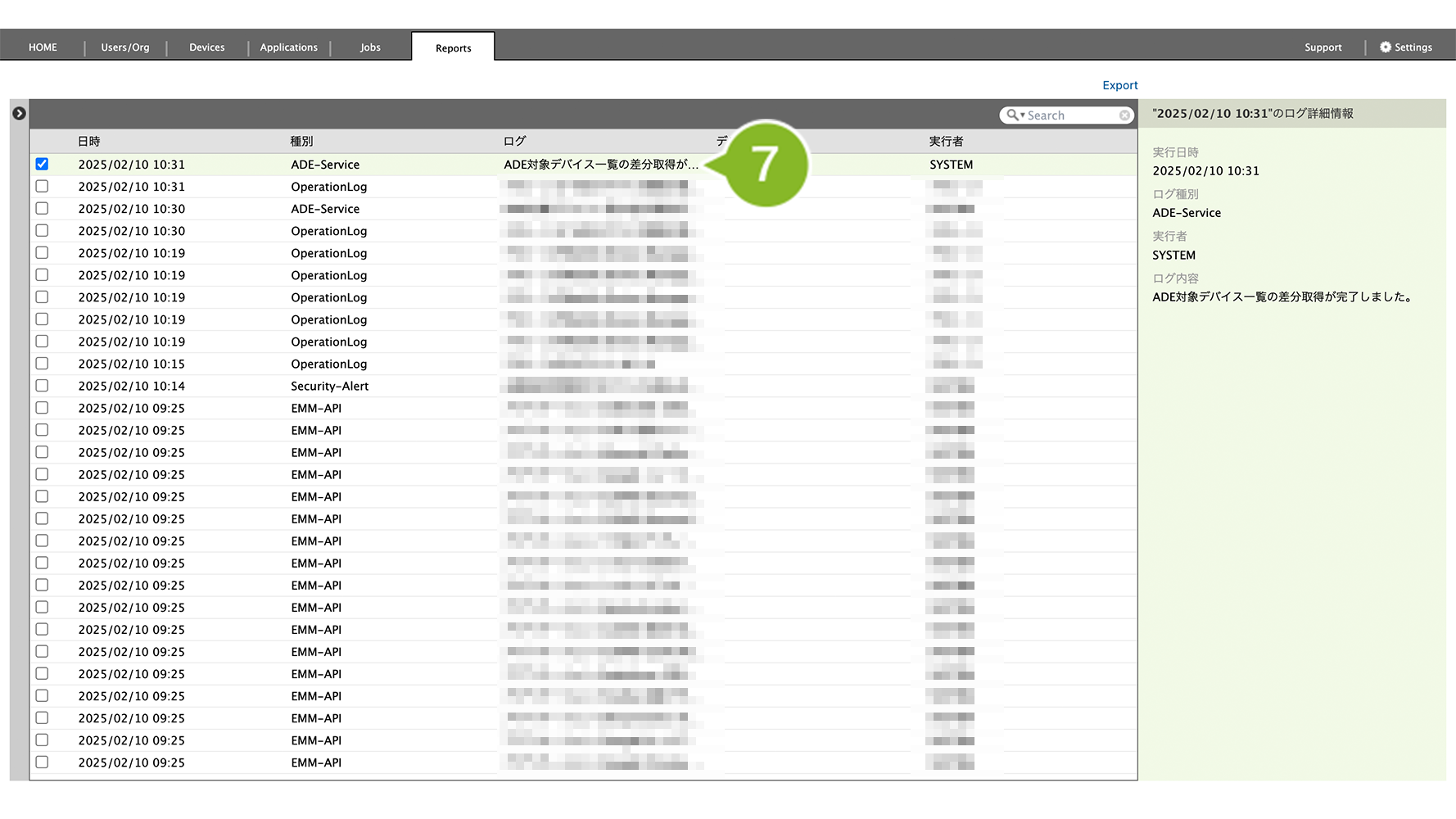 7. Reports 画面で ADE デバイス一覧の情報取得完了のお知らせが表示されていたら正しいトークンを更新できたことが確認できます。
