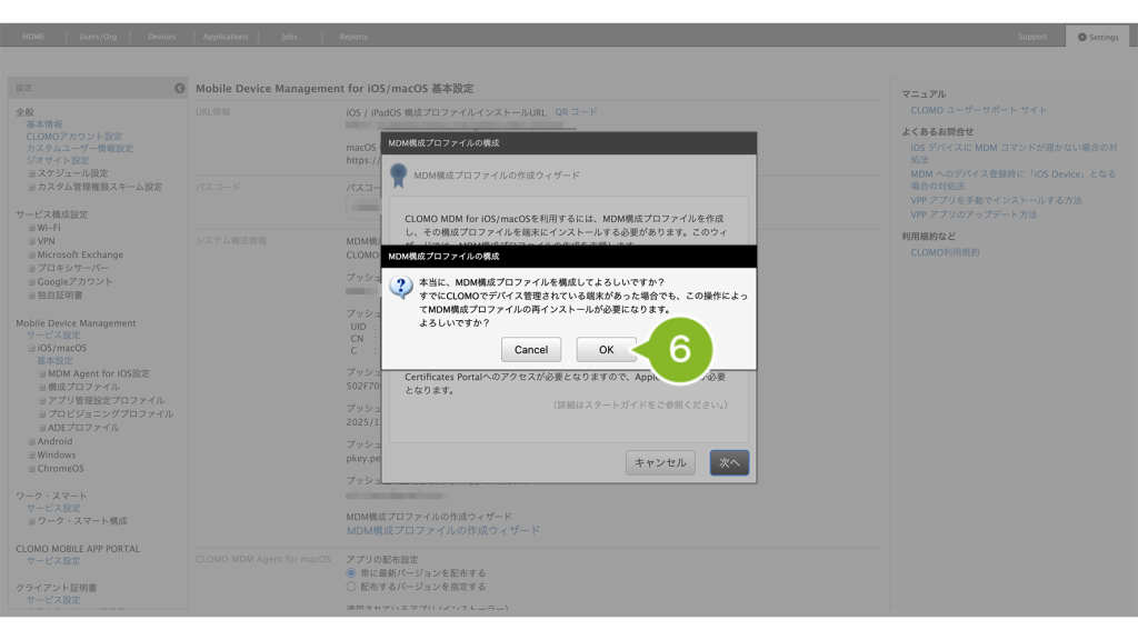 ※ 本ページの操作通りに作業を実施すれば、登録済み端末に MDM 構成プロファイルを再インストールせずにそのまま利用できます。