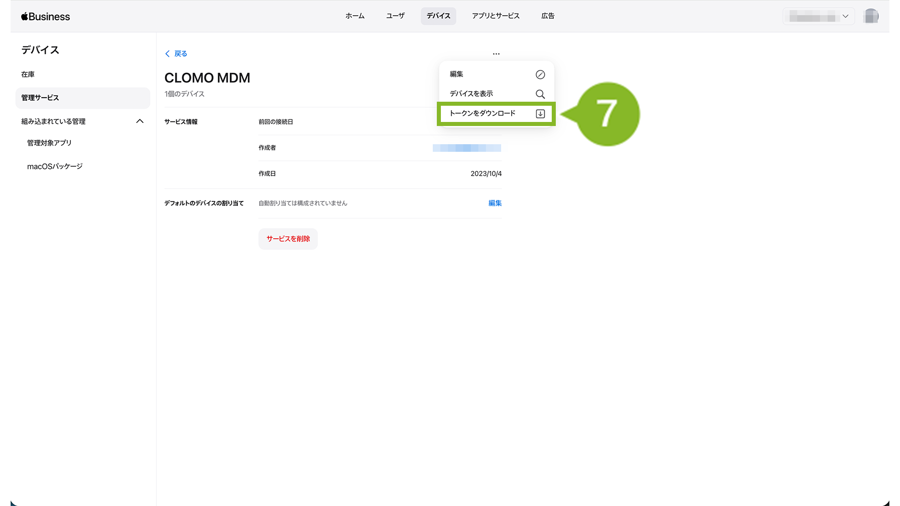 3-4-1:Apple Business でサービストークンをダウンロードする