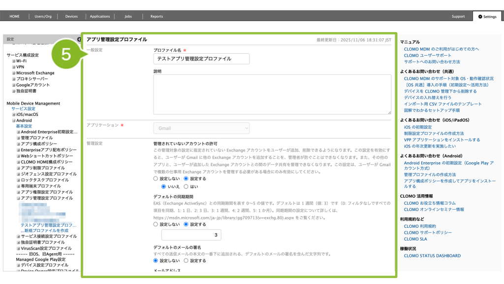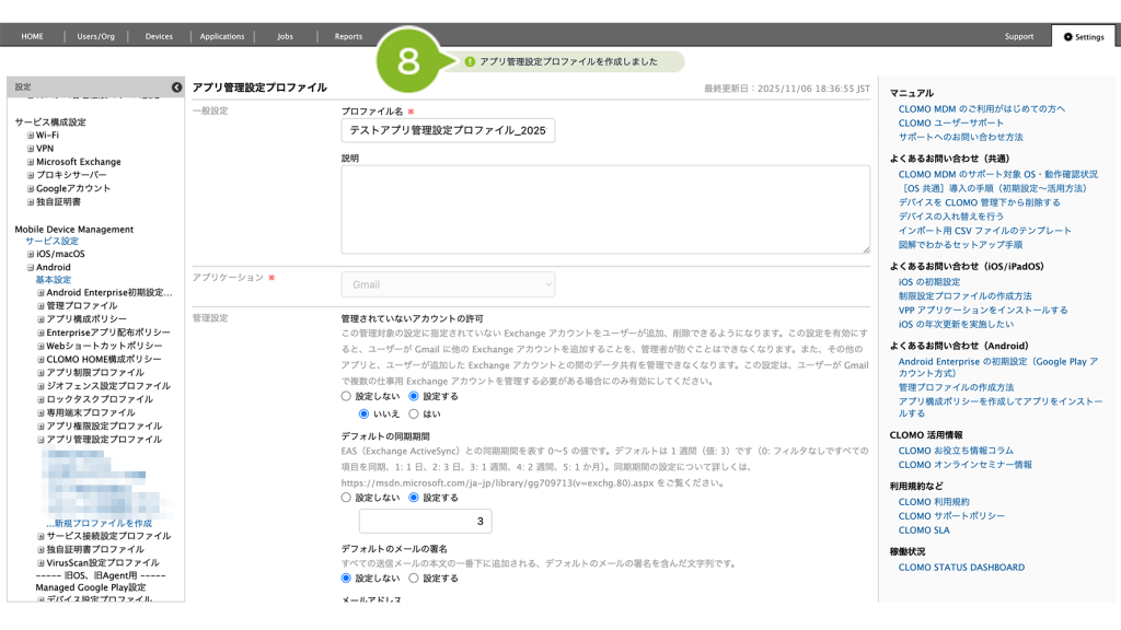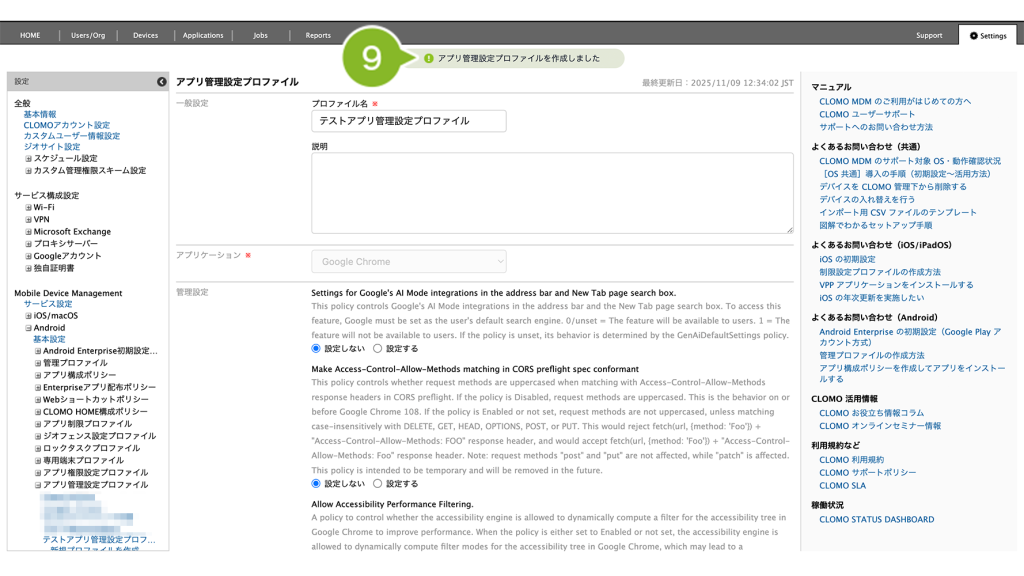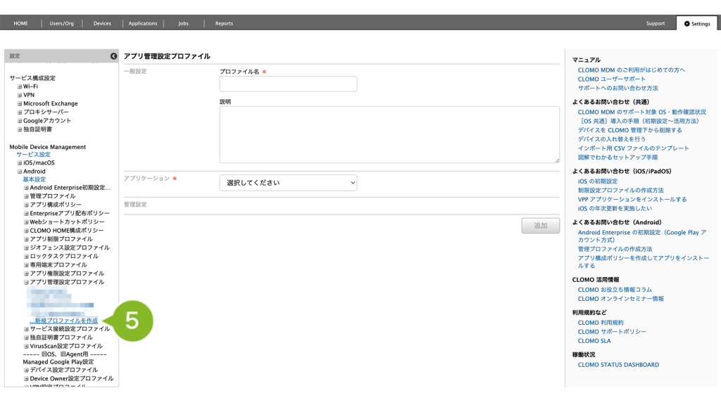 「アプリ管理設定プロファイル」の作成手順は、以下のとおりです。