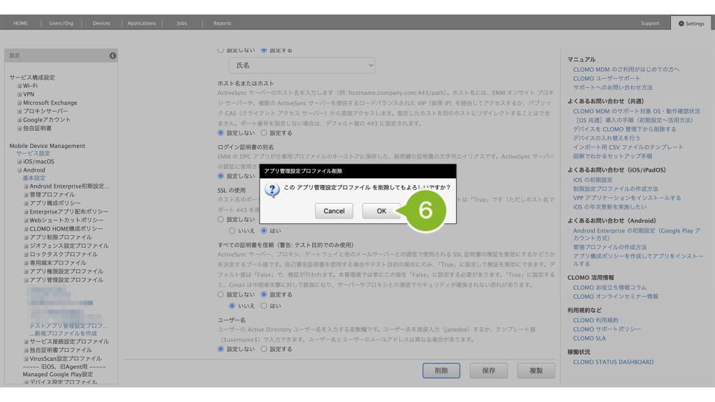 アプリ管理設定プロファイルの削除