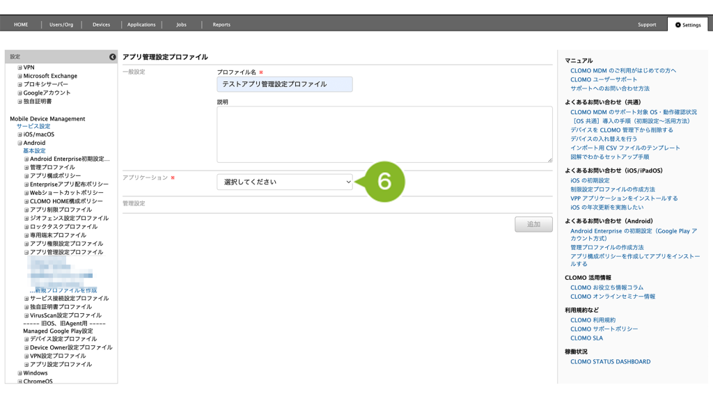アプリ管理設定プロファイルの作成