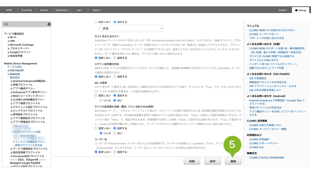 アプリ管理設定プロファイルの複製