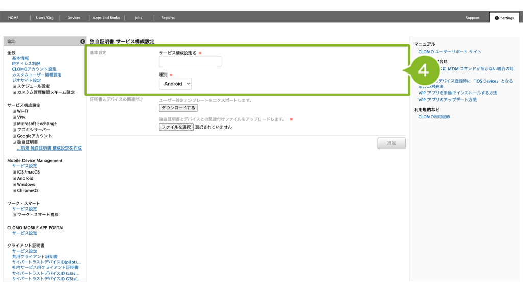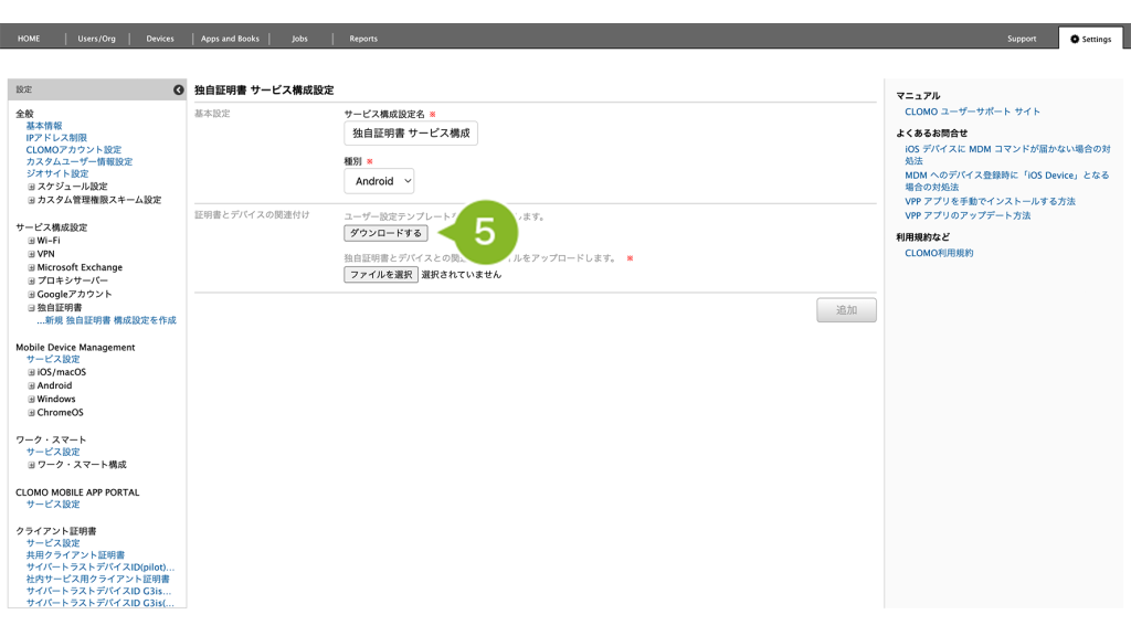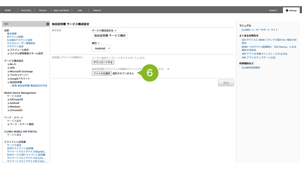 5. デバイスがどの証明書ファイルを使用するかを判断するために、デバイス情報と証明書ファイル名を関連付ける設定をおこないます。