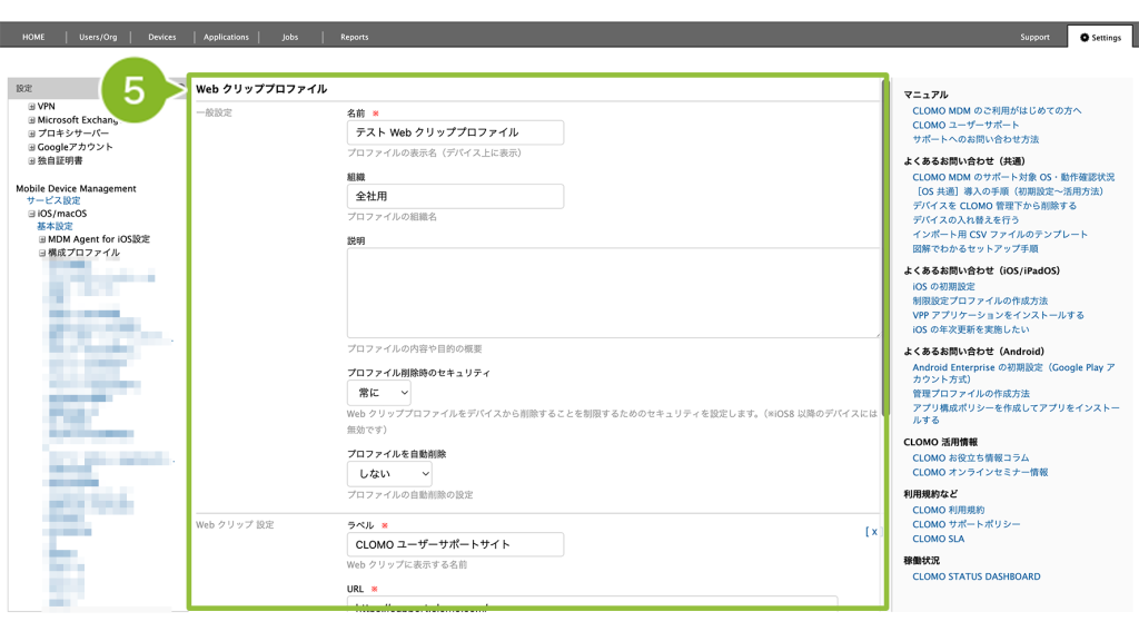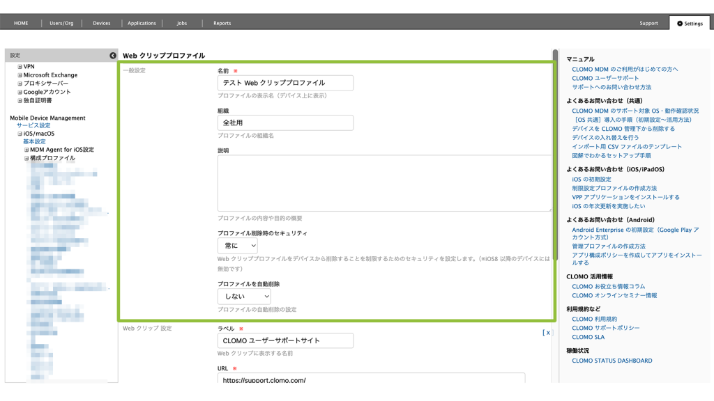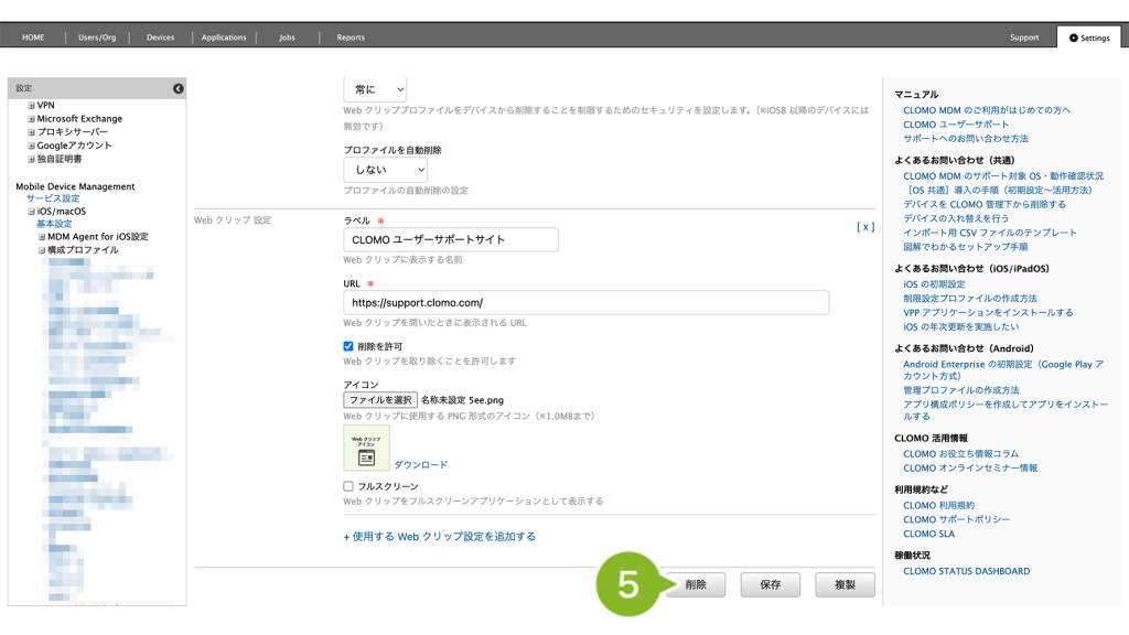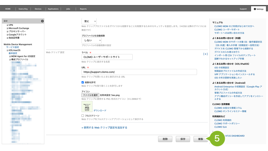 ・Web クリッププロファイルの作成・編集・複製・削除方法を確認したい方