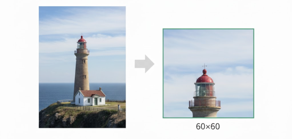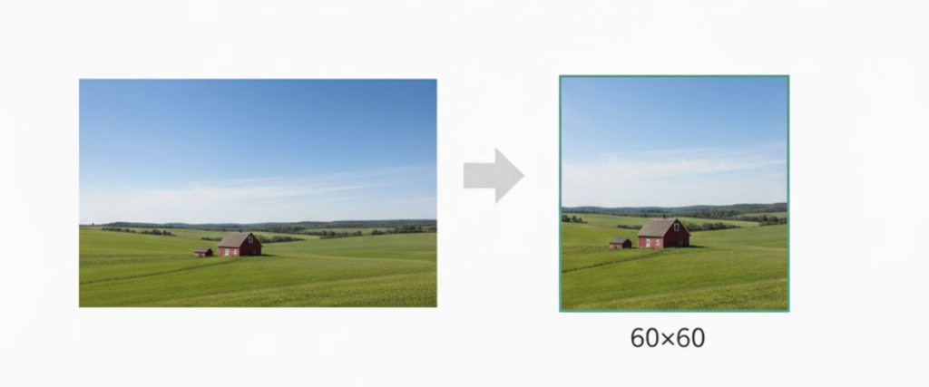 横長の画像を指定した場合、画像中央部分を60×60 pixel でアイコン表示します。