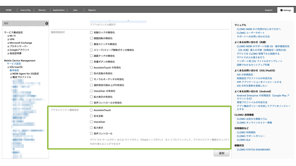 アクセシビリティ機能設定