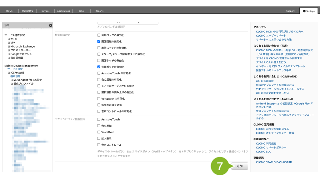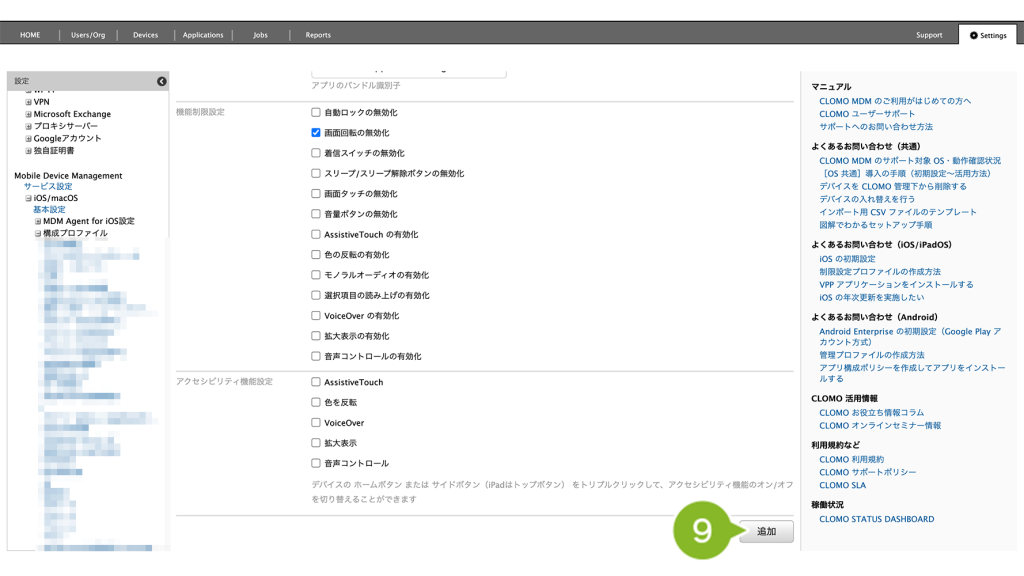 作成完了後、デバイスにプロファイルを適用する方法は以下のとおりです。
