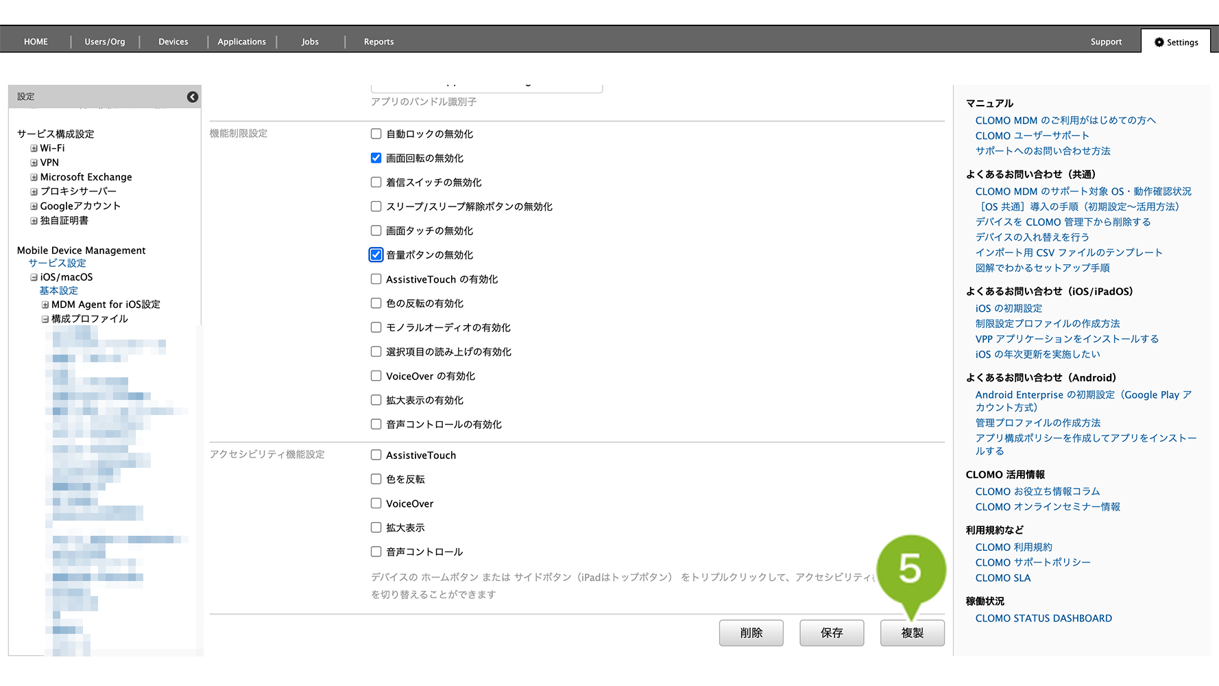 「シングル App モードプロファイル」の複製手順は、以下のとおりです。