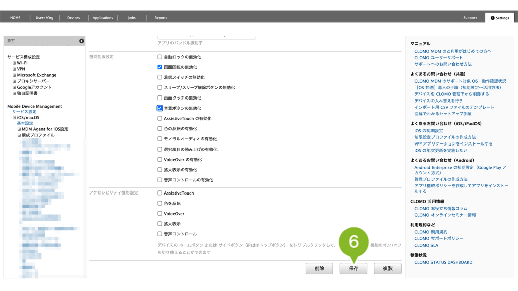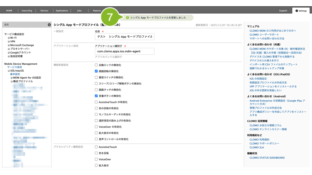 編集完了後、該当の「シングル App モードプロファイル」を個別適用しているデバイスには、デバイスから適用済みのプロファイルを削除後にインストールを実行してください。