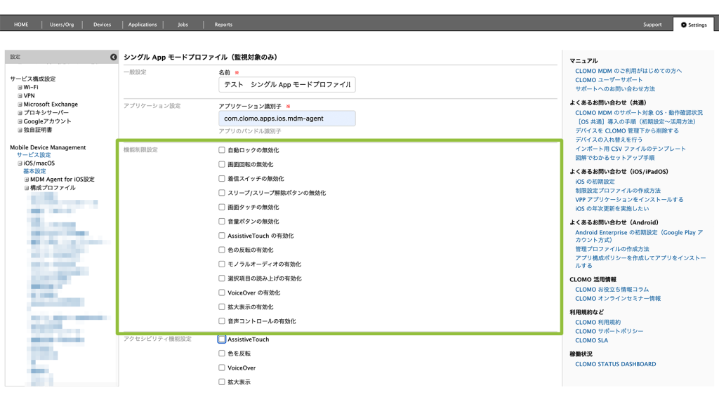 シングル App モードプロファイルは、iOS デバイスで特定のアプリケーションだけ操作できるように制限するための設定です。