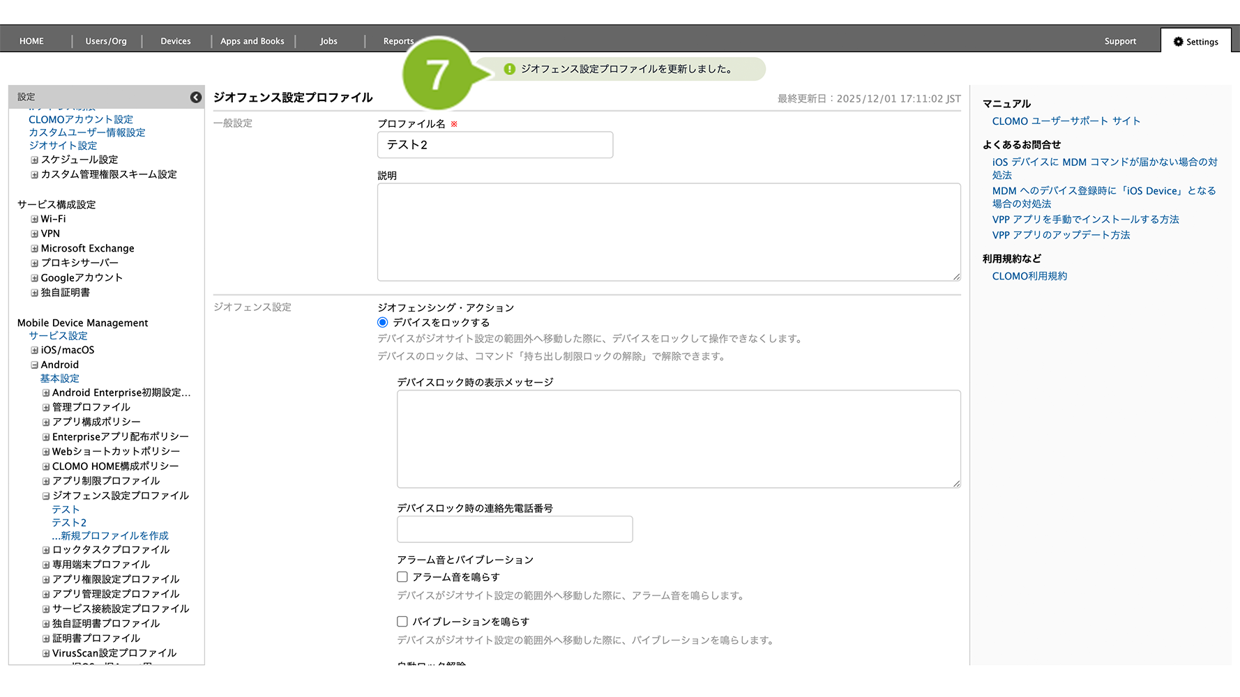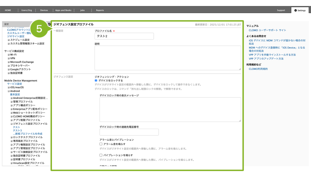 ・ジオフェンス設定プロファイルの作成手順を確認する場合