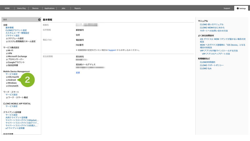 2. 「Mobile Device Management」の[Android]をクリックします。