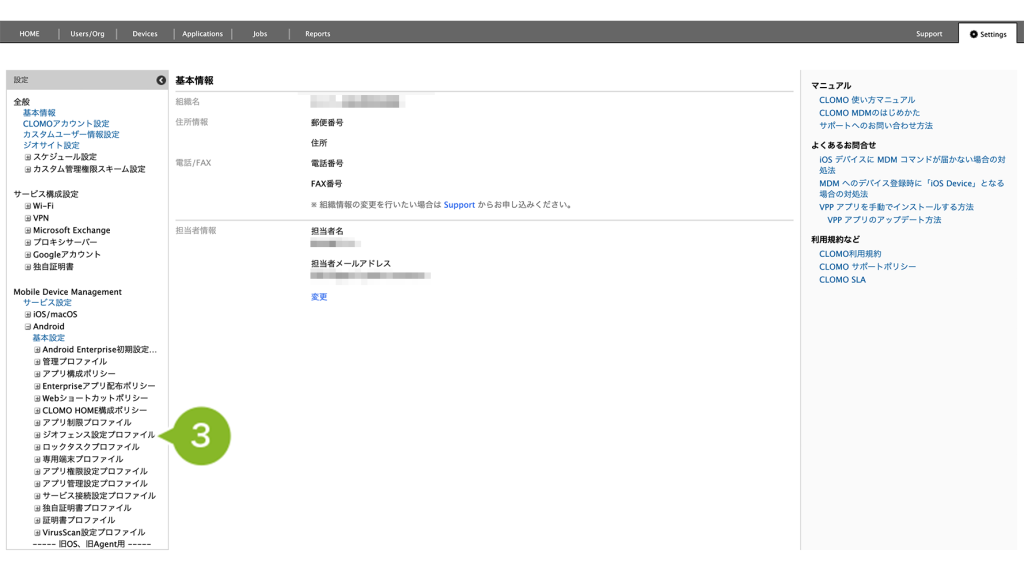 3. [ジオフェンス設定プロファイル]をクリックします。