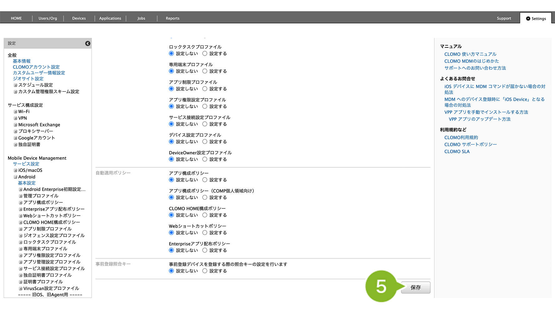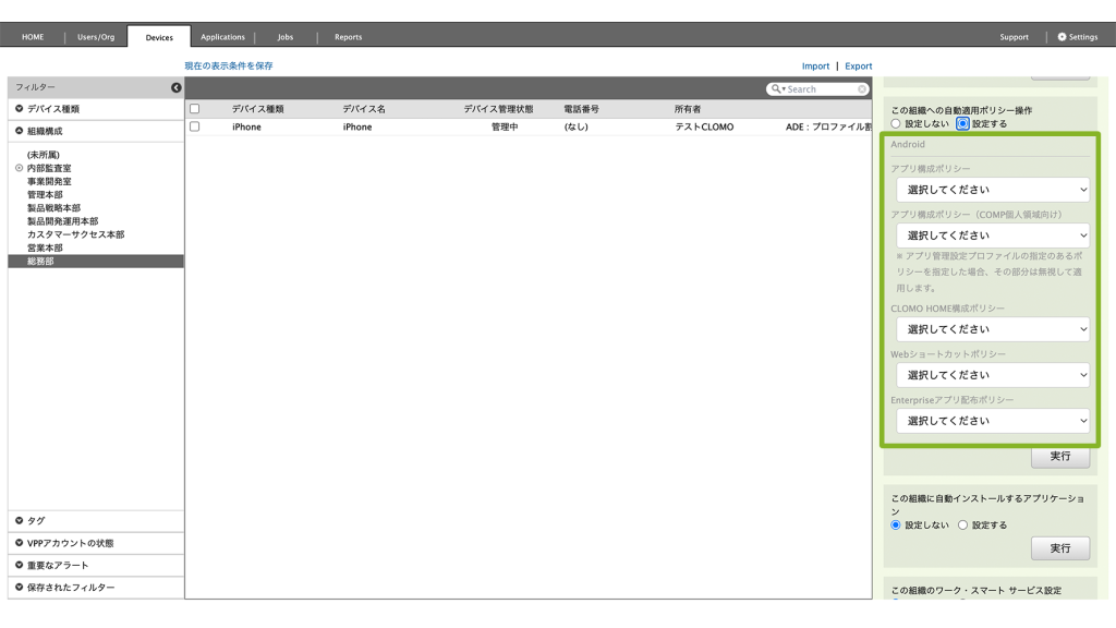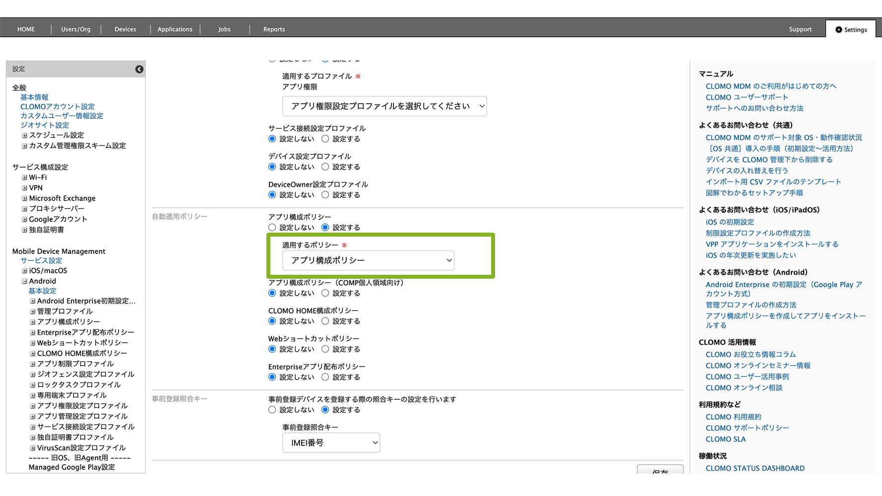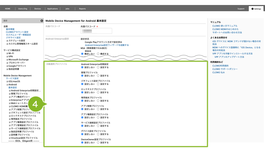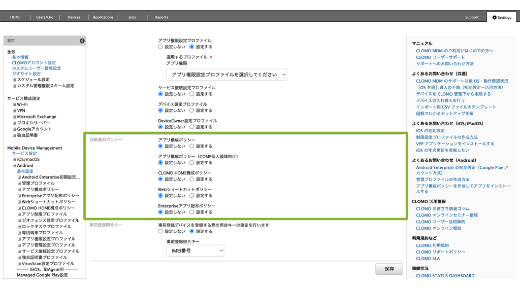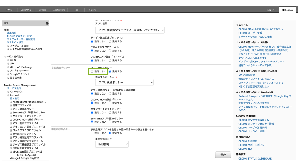 CLOMO MDM に登録する Android デバイスすべてに自動適用設定をしたい場合