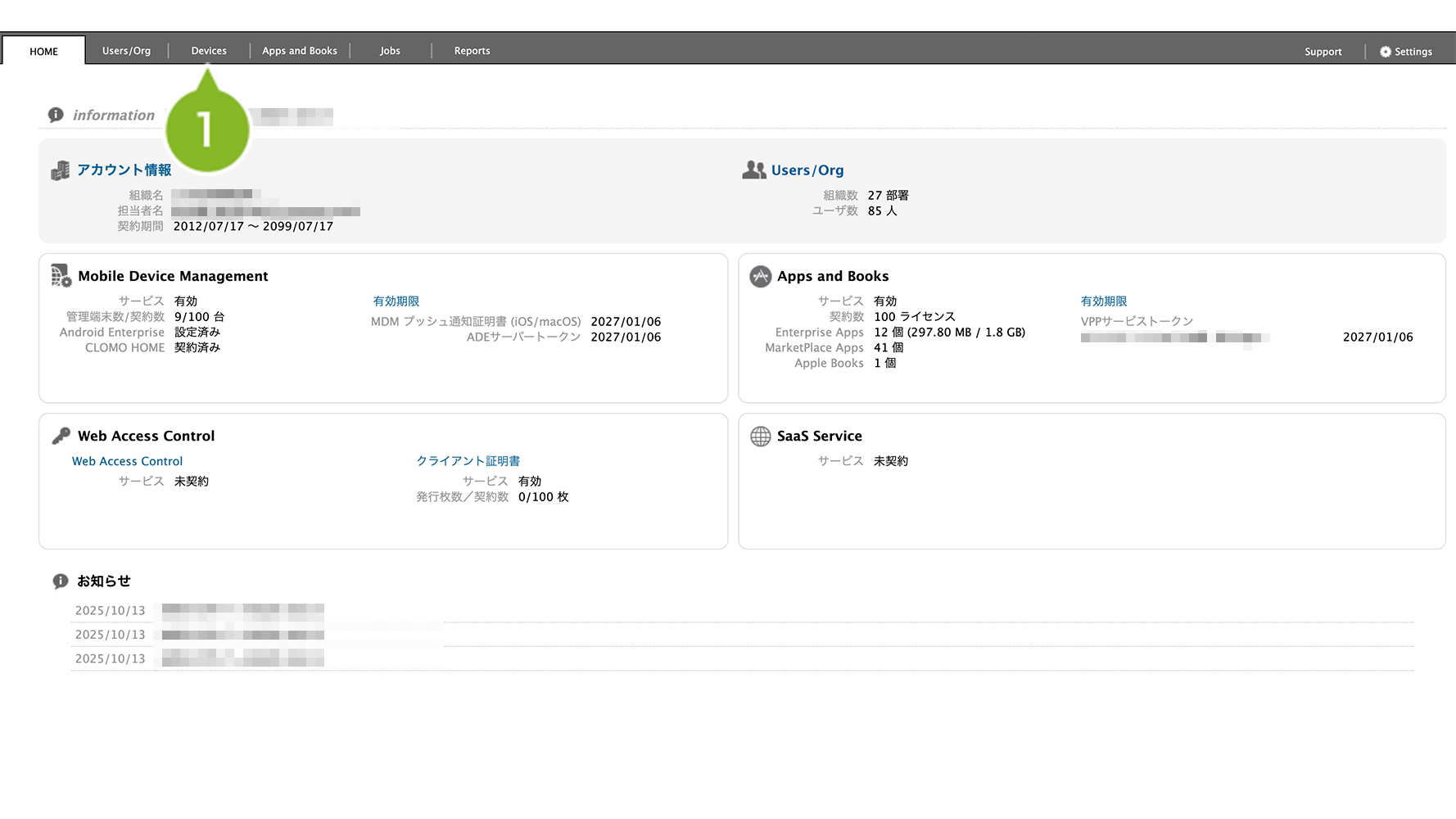 1. CLOMO PANEL にログイン後、[Devices]をクリックします。