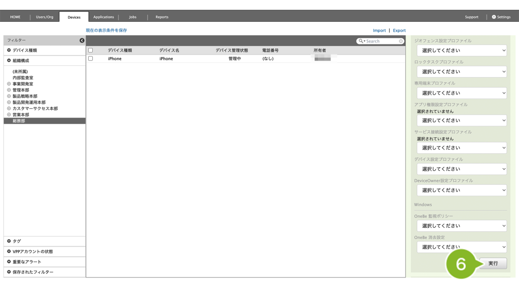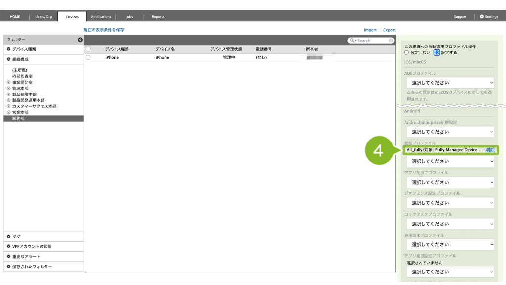 1. 個別デバイスを選択して適用されたプロファイル