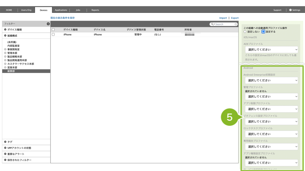 選択した組織の Android デバイスに自動適用設定をしたい場合