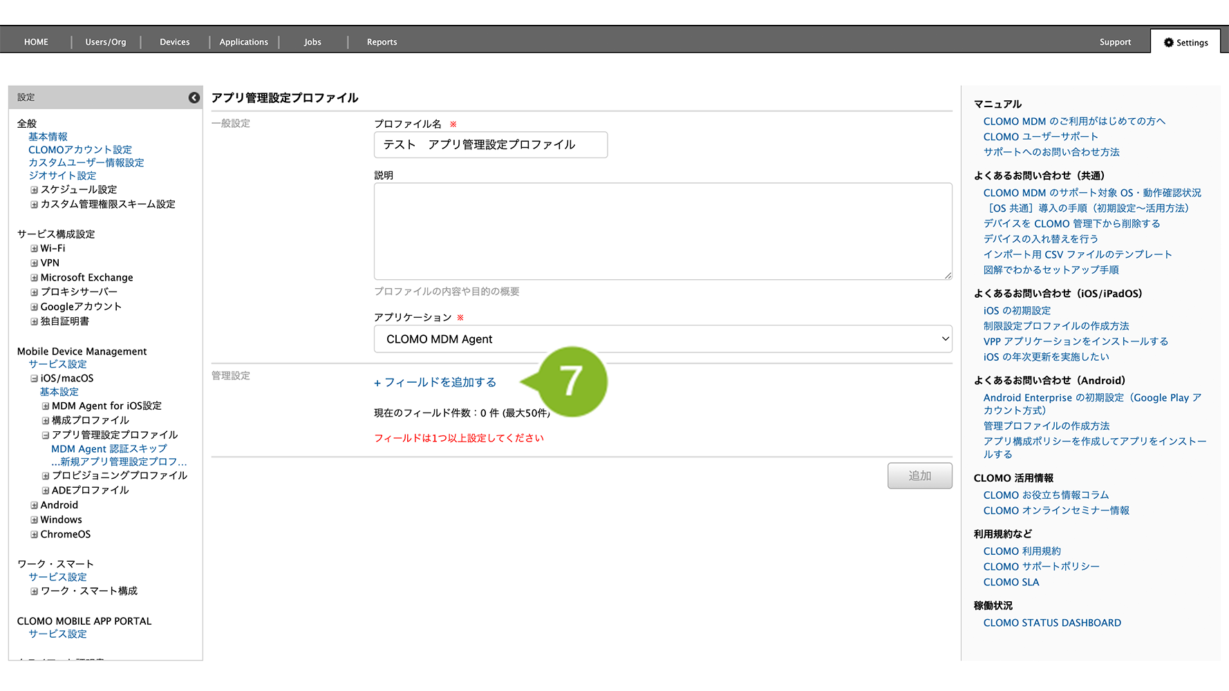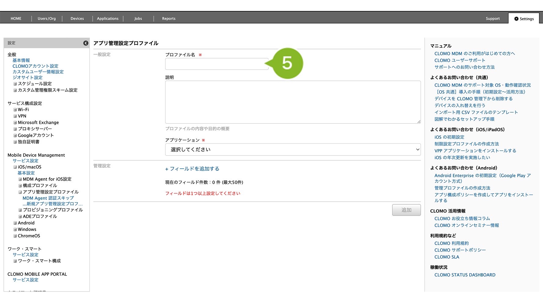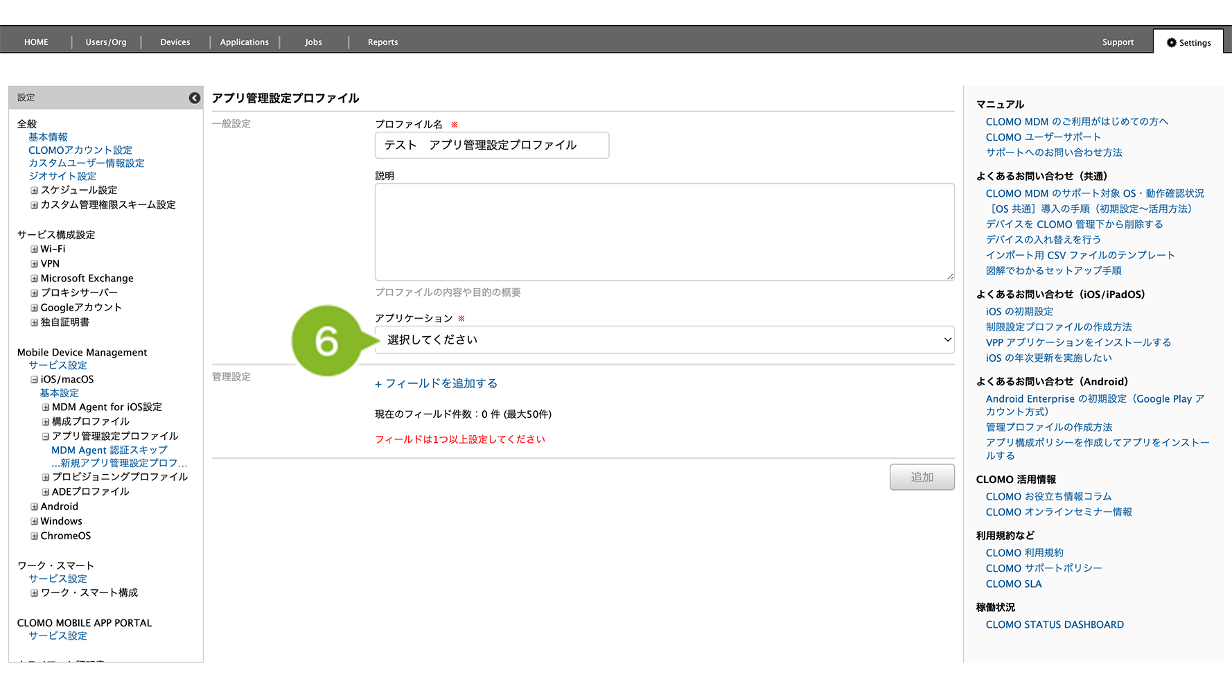 5. アプリ管理設定プロファイル画面が表示されます。プロファイル名を入力します。設定は必須です。