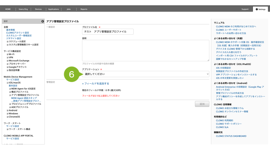 アプリ管理設定プロファイルの作成