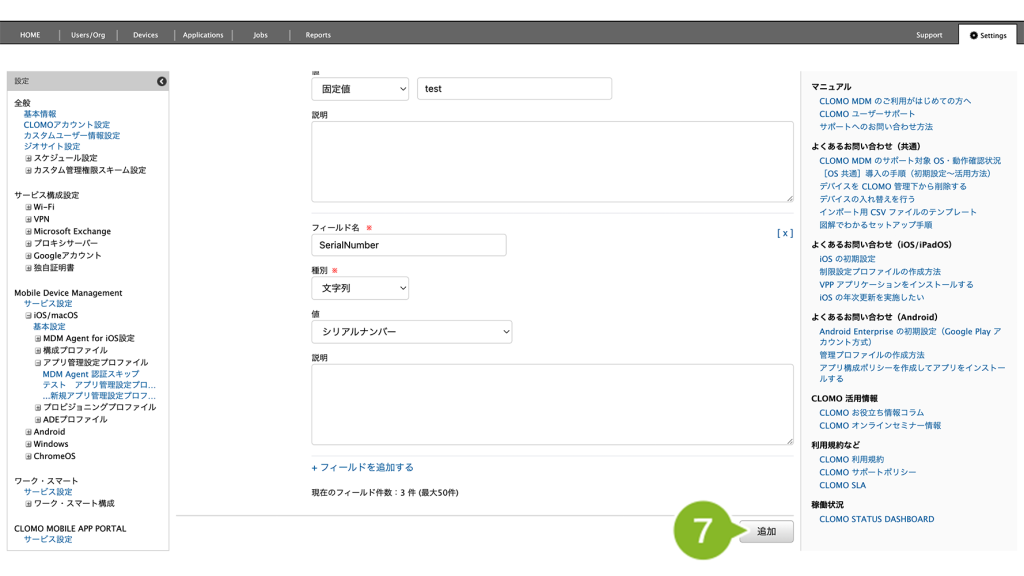 7. [フィールドを追加する]をクリックします。
