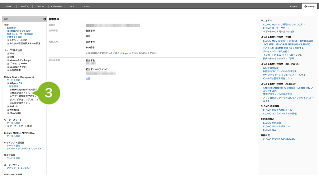 作成完了後、デバイスにプロファイルを適用する方法は以下のとおりです。