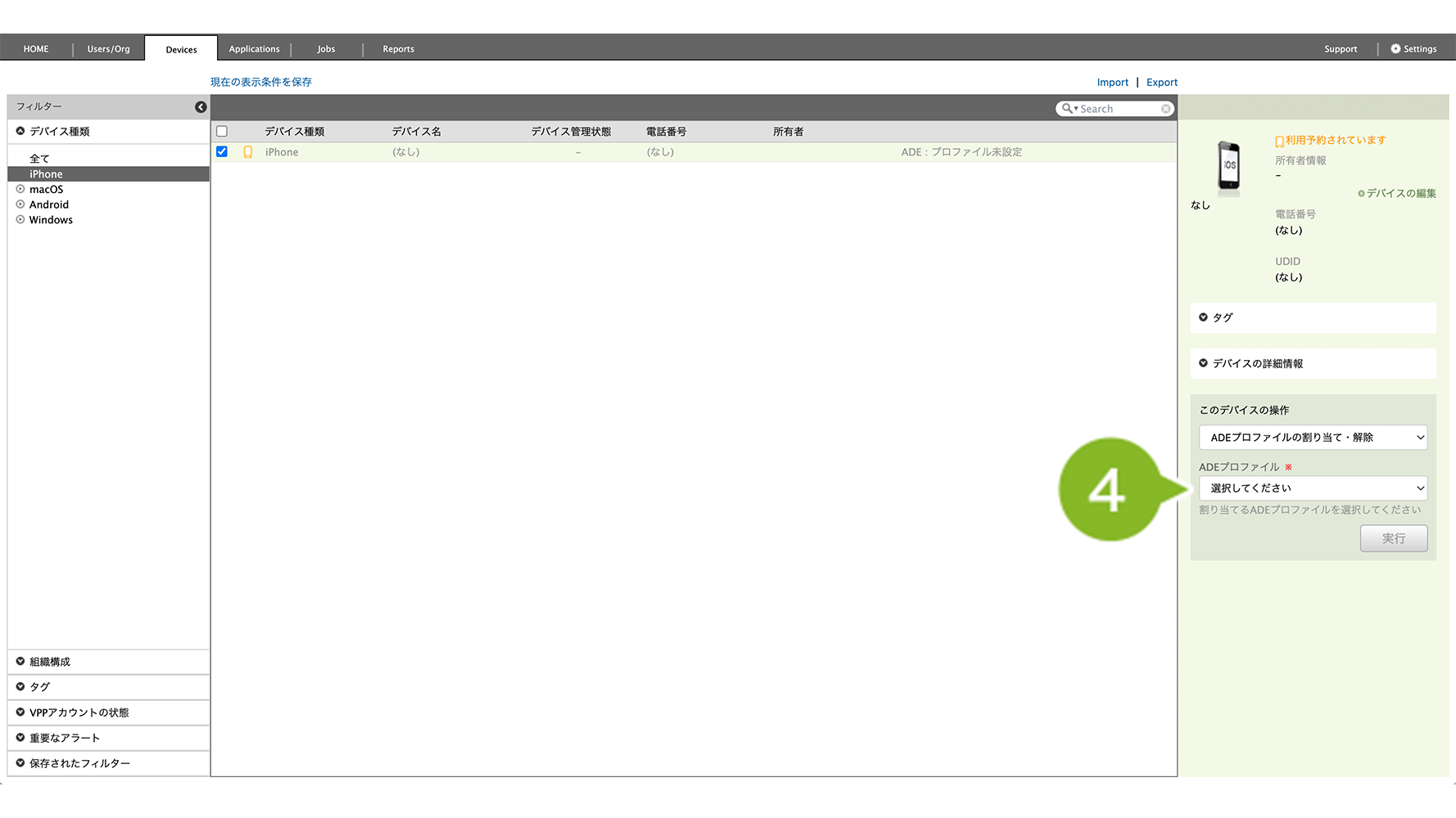 利用予約デバイスに ADE プロファイルを適用する手順は以下の通りです。