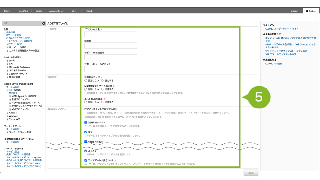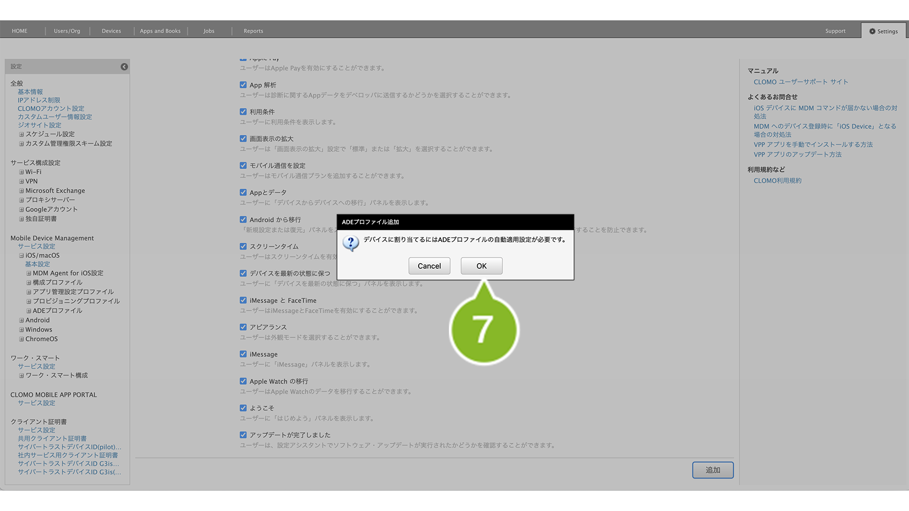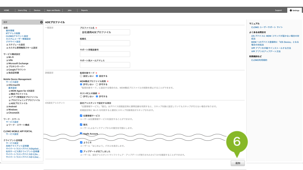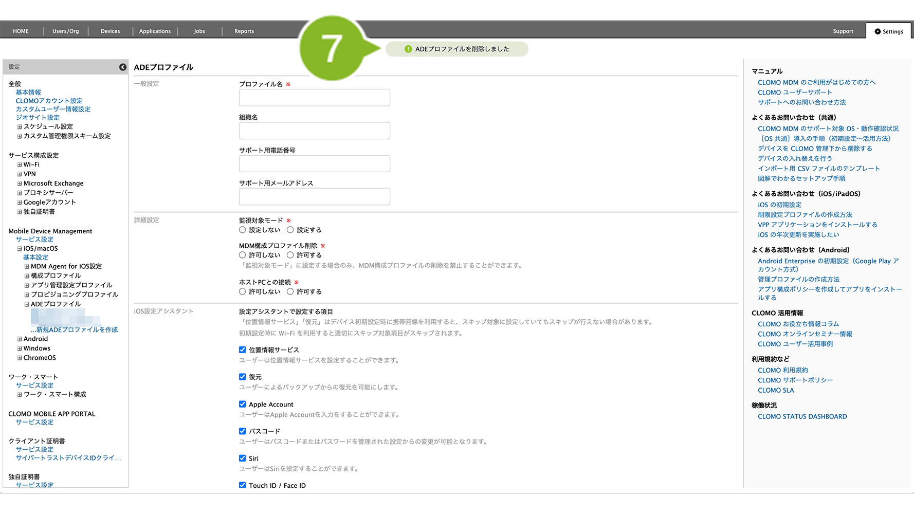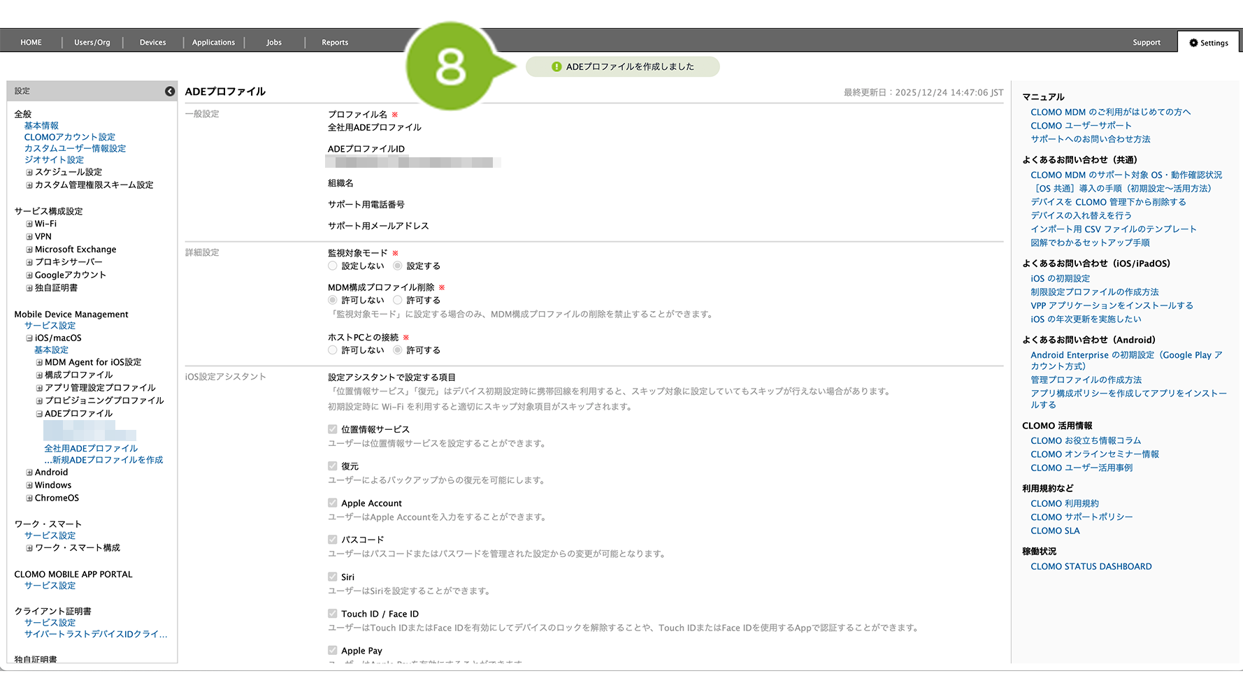 適用方法は ADE プロファイルを適用するをご参照ください。