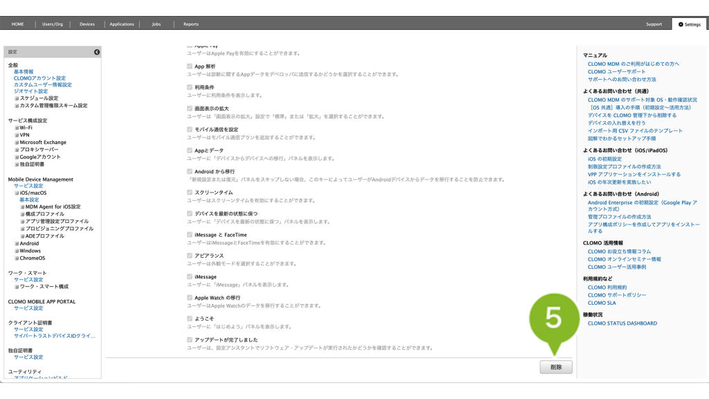 詳細は、CLOMO MDM に登録する iOS デバイスすべてに自動適用設定をしたい場合をご参照ください。
