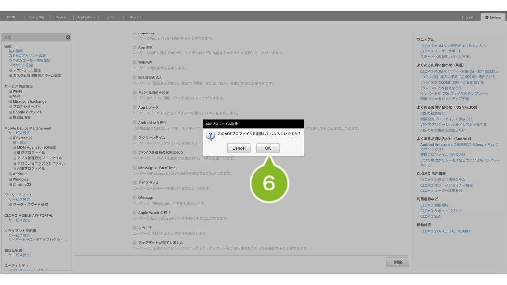 「ADE プロファイル」の削除手順は、以下のとおりです。