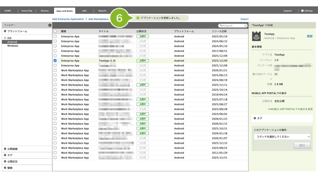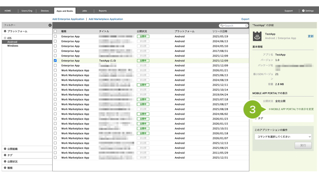 登録したアプリケーションの MOBILE APP PORTAL での表示を変更する場合
