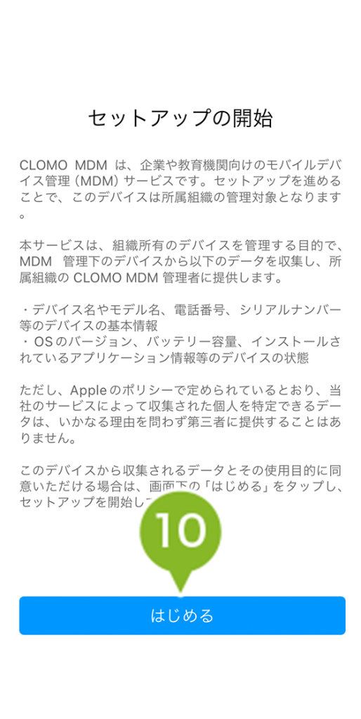 10. [ はじめる ] をタップします。