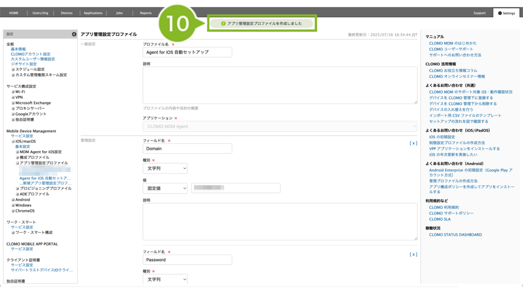 10. 画面上部にお知らせが表示されたらプロファイル作成完了です。