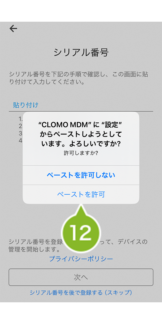 12. [ ペーストを許可 ] をタップします。