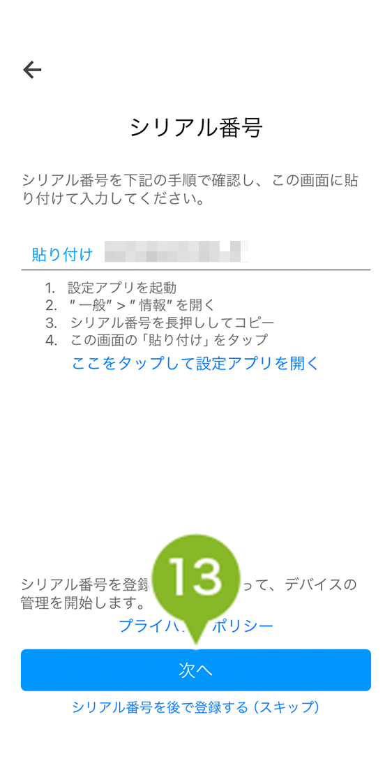 13. [ 次へ ] をタップします。