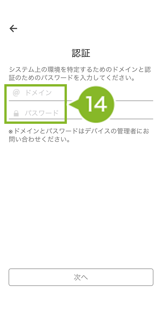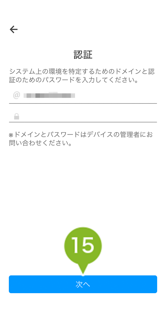 14. ドメインとパスワードを入力します。確認方法は【iOS/macOS】基本設定からドメインとパスコードを確認するをご参照ください。