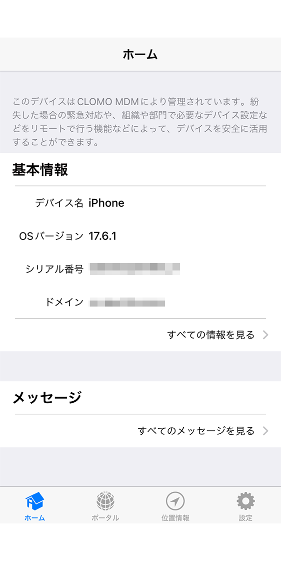 CLOMO MDM の管理者がデバイスに対して送信した、新着メッセージを確認することができます。