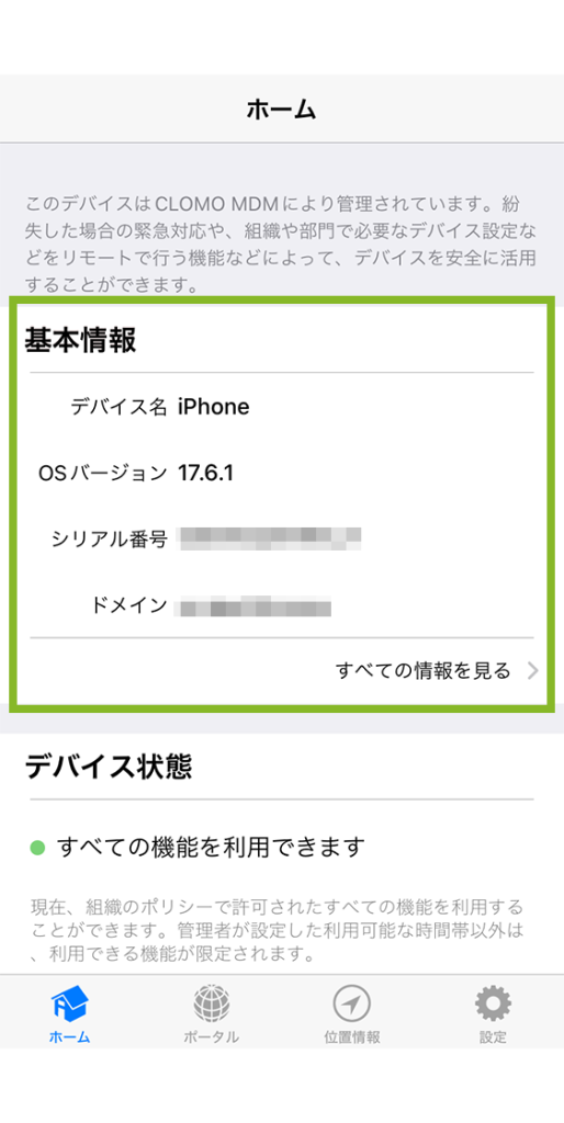 CLOMO MDM Agent for iOS をセットアップしているデバイスは、追加で以下の機能が使えるようになります。