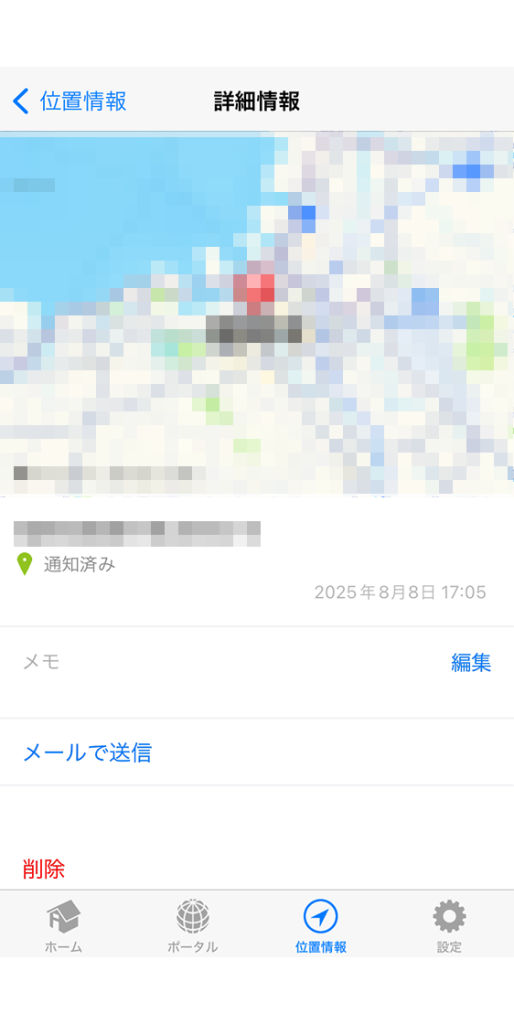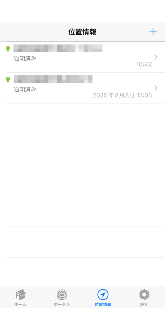 以下の位置情報の履歴一覧が表示されます。