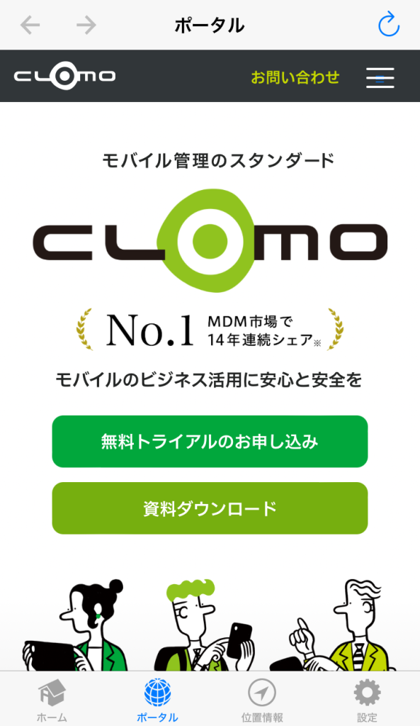 CLOMO MOBILE APP PORTAL サービス設定が有効になっており、特別な設定をしていない場合は、CLOMO MOBILE APP PORTAL が表示されます。