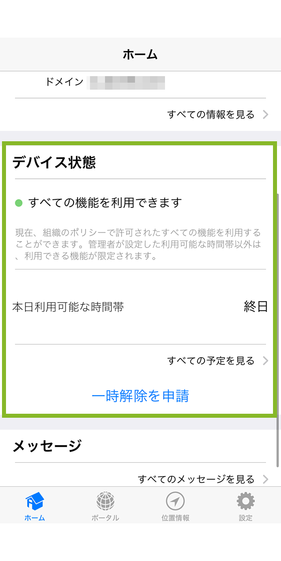 詳しくは、iOS デバイス利用者が管理者にメッセージを送信をご確認ください。