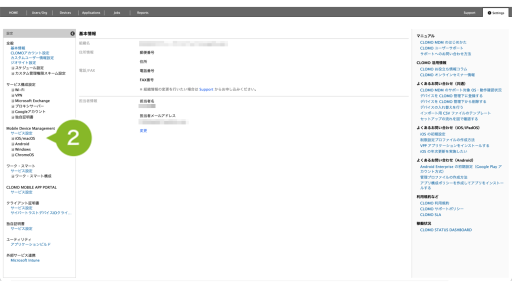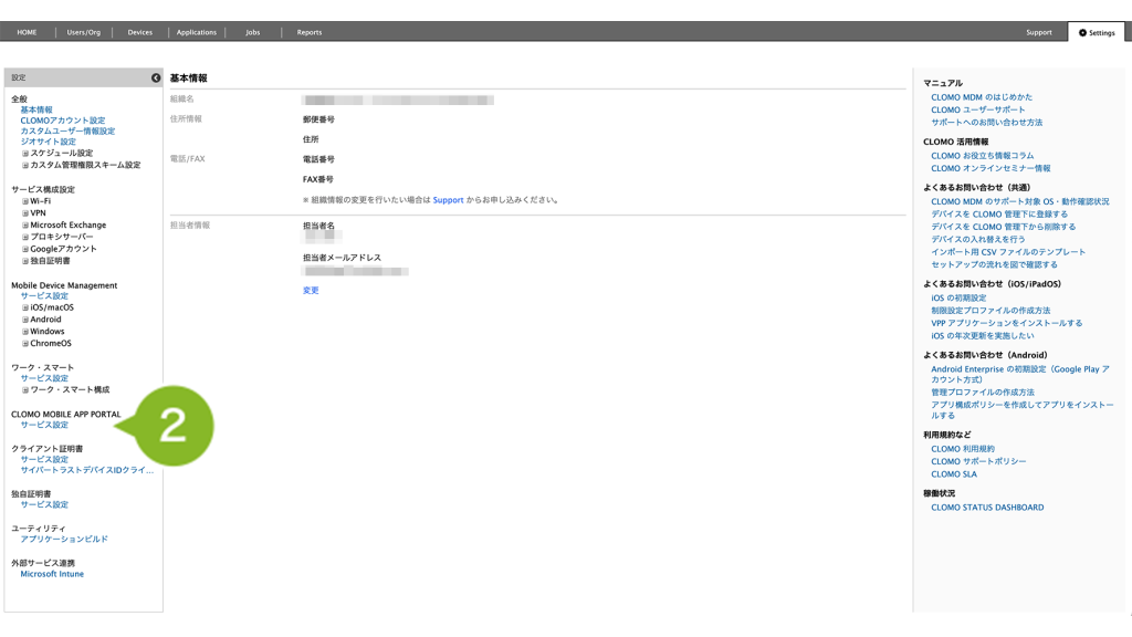 2. CLOMO MOBILE APP PORTAL の [ サービス設定 ] をクリックします。