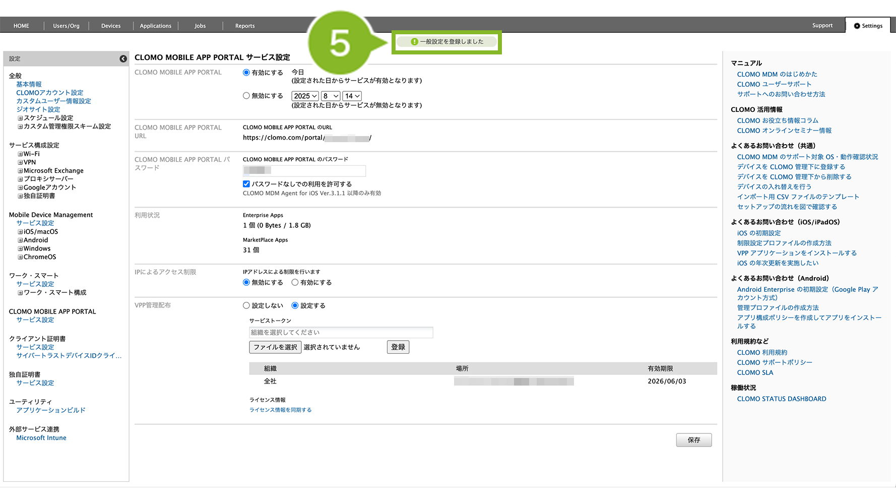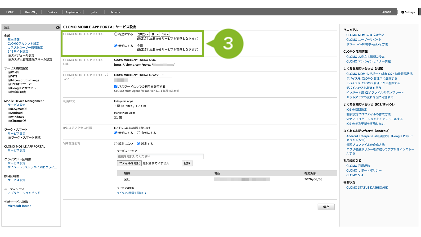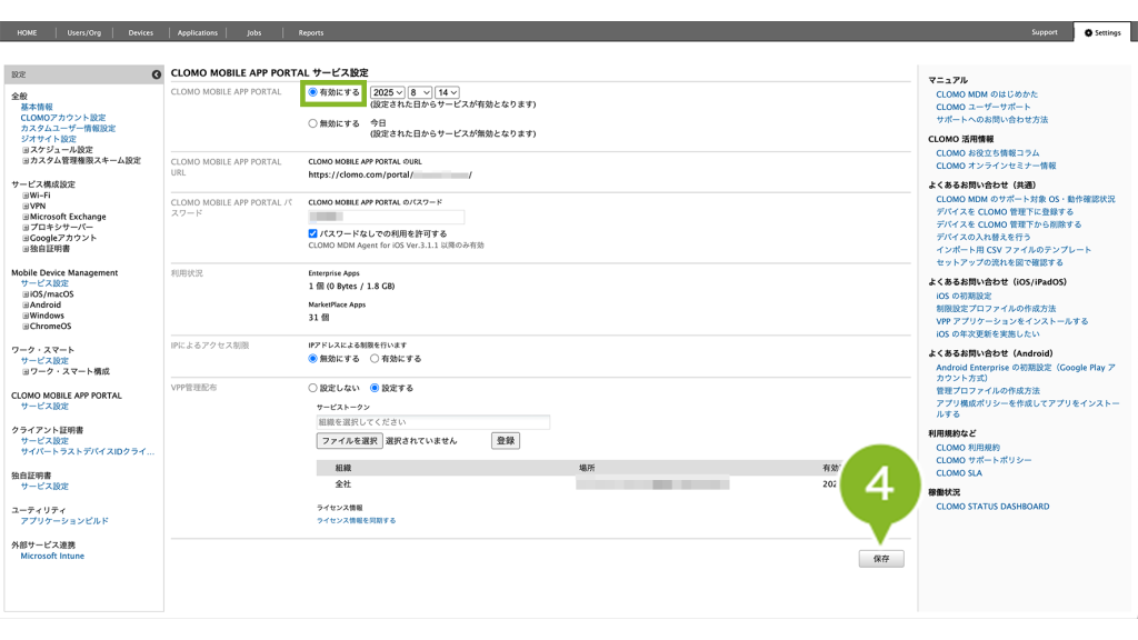 CLOMO MOBILE APP PORTAL サービス設定が無効に設定されている可能性があります。