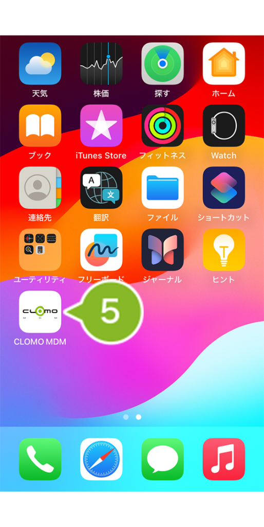 5. ホーム画面に戻り、[ CLOMO MDM ] をタップします。